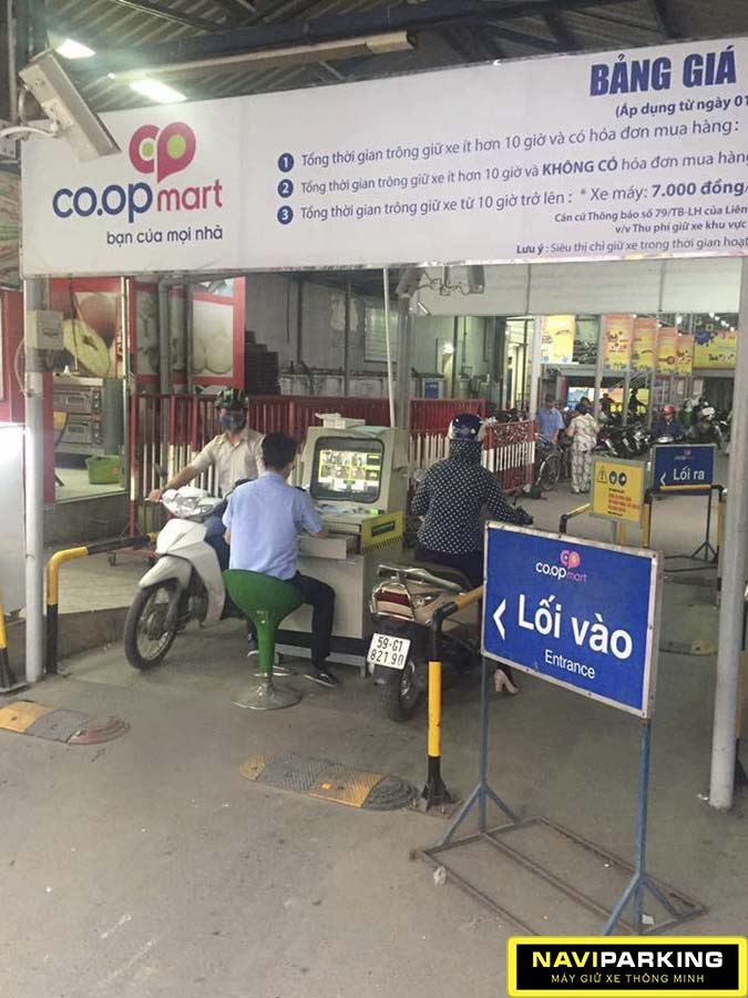 Hình ảnh máy giữ xe thông minh Naviparking tai Co.opmart Phan Văn trị.