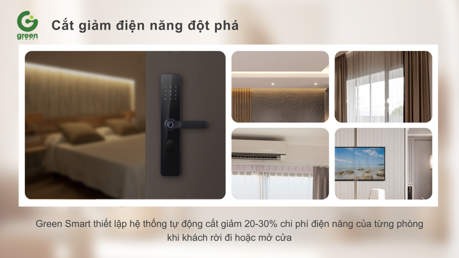 Cắt giảm điện năng đột phá: Bằng cách thiết lập hệ thống cảm biến PIR (phát hiện chuyển động) và cảm biến cửa sổ/ban công ngay trong bản vẽ, Green Smart thiết lập hệ thống tự động cắt giảm 20-30% chi phí điện năng của từng phòng khi khách rời đi hoặc mở cửa.