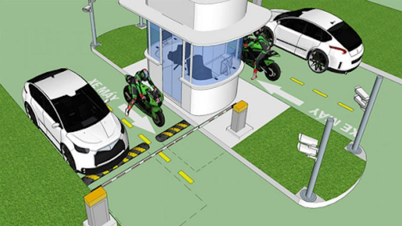 Khi xe vào, camera sẽ tự động quét biển số, chụp hình người lái và phương tiện.